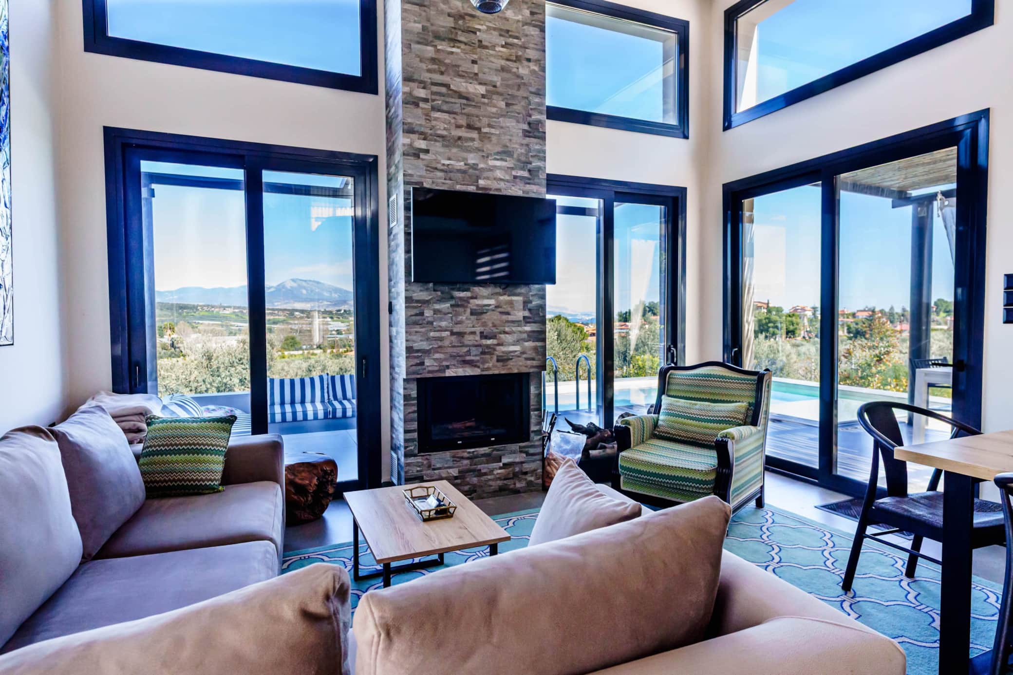 With expansive glass doors, high ceilings, and abundant natural light from sunrise to sunset, each villa is designed for ultimate comfort and relaxation. Thoughtfully furnished with state-of-the-art amenities, including avant-garde solar water heating systems and plush beds, our villas are uniquely tailored to create a warm, inviting atmosphere, enhanced by soft lighting and a cozy fireplace. Each villa also features its own private pool, complete with a special tanning ledge or shallow sun shelf, perfect for lounging in the water and soaking up the sun.