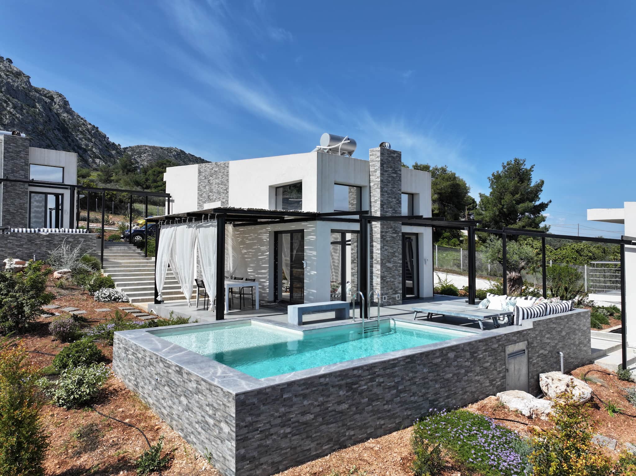 Aelia Horizon Villas offers a peaceful retreat just an hour from Athens, surrounded by breathtaking mountains, stunning sea views, ancient monuments, and vibrant local culture.