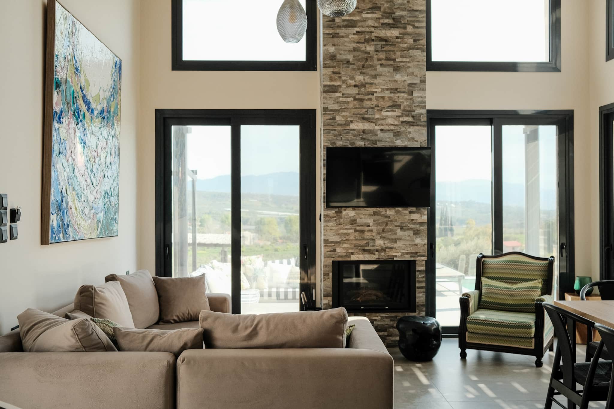 Each Villa is stylishly furnished and designed with state-of-the-art amenities, this retreat provides the perfect blend of comfort and sophistication. Featuring crisp glass doors and high ceilings, there is an abundance of natural light from sunrise to sunset. Uniquely tailored with warm interior lighting and the glow of a fireplace, each villa creates a soft, whimsical environment. Suites are equipped with avant-garde solar water heating systems and plush beds for ultimate comfort. Walking distance from both mountainous and sea terrain, exploring Korinth’s natural beauty is made simple. Enjoy breathtaking views, relax by the pool, and immerse yourself in local culture and hospitality.