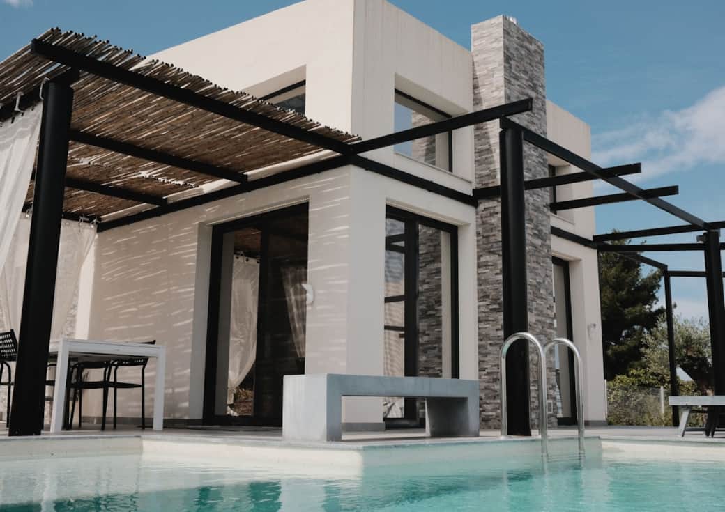 Each Villa is stylishly furnished and designed with state-of-the-art amenities, this retreat provides the perfect blend of comfort and sophistication. Featuring crisp glass doors and high ceilings, there is an abundance of natural light from sunrise to sunset. Uniquely tailored with warm interior lighting and the glow of a fireplace, each villa creates a soft, whimsical environment. Suites are equipped with avant-garde solar water heating systems and plush beds for ultimate comfort. Walking distance from both mountainous and sea terrain, exploring Korinth’s natural beauty is made simple. Enjoy breathtaking views, relax by the pool, and immerse yourself in local culture and hospitality.